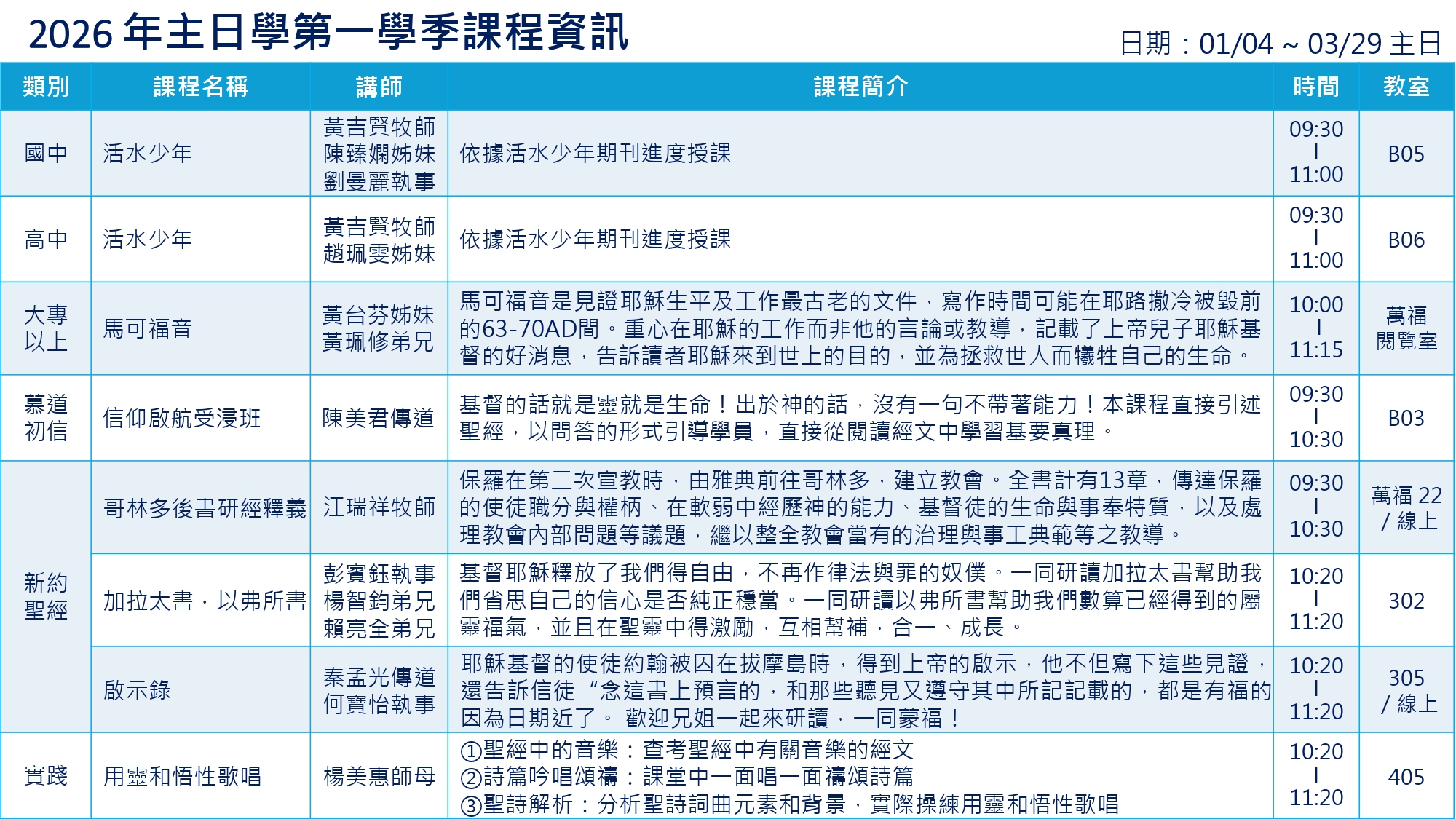 Sunday School 主日學 Time 時間資訊 若有任何問題或參加主日學,請聯絡江瑞祥牧師: 教會分機:02-23625321 ext. 188電子郵件:rchiang@gbc.org.tw手機:0952650867Line ID: mitrchiang 馬上註冊報名 線上聆聽課程
